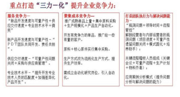 此次管理改善,遠(yuǎn)大方略項目團隊將和信大團隊一起,重點圍繞公司組織系統(tǒng)建設(shè)、PMC模式構(gòu)建、產(chǎn)品開發(fā)管理、質(zhì)量控制體系、采購與供應(yīng)商管理進行變革。逐步提升公司客戶滿意度、提升內(nèi)部運做效率、提升公司資金周轉(zhuǎn)速度、提升公司組織能力,打造企業(yè)核心競爭力!管理改善永無止境,制造型企業(yè)的轉(zhuǎn)型和升級在“外腦”的共同參與下將事半功倍!遠(yuǎn)大方略致力于制造型企業(yè)管理咨詢,為客戶創(chuàng)造價值是我們永恒的追求!